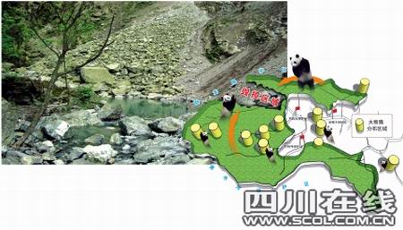 鞍子河保護區管理處副主任王磊翻開地圖,畫出了一條線作出詳細的解讀:原來,我省野生大熊貓分布區中,分成了岷山山系和邛崍山系兩大區,鞍子河保護區屬于邛崍山系,與臥龍、寶興蜂桶寨、天全喇叭河自然保護區連成一片,構成邛崍山系大熊貓嚴密保護網,鞍子河保護區的位置正好像個走廊連接其他區,而五碼槽更像是臥龍大熊貓南下的“首站”。但現在,這條走廊受損,這會在一定程度上影響大熊貓交流。據他介紹,每年四五月份,成年大熊貓不顧山水的阻隔,進入鞍子河保護區前往目的地,尋找自己的“意中人”,現在“鵲橋”的一部分告急,勢必影響邛崍山系大熊貓之間交流。