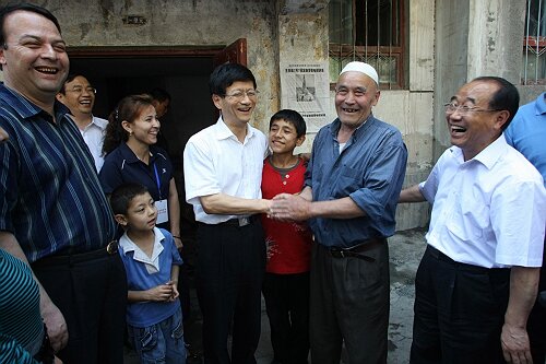烏魯木齊市天山區(qū)團結(jié)西社區(qū)是一個維吾爾、哈薩克、蒙古和漢族等多民族和睦相處的社區(qū)。孟建柱先后來到鄒德敬和巴合提亞爾等居民家中走訪看望,并與在樓前樹陰下乘涼的社區(qū)居民談心,了解他們的生活狀況,傾聽他們的心聲,面對面地講道理、做工作。社區(qū)群眾真情訴說在美麗富饒的新疆各族人民和睦相處、共同發(fā)展的樁樁事例,紛紛聲討民族分裂分子的無恥行徑,強烈要求嚴(yán)懲兇手,維護幸福安康的生活。