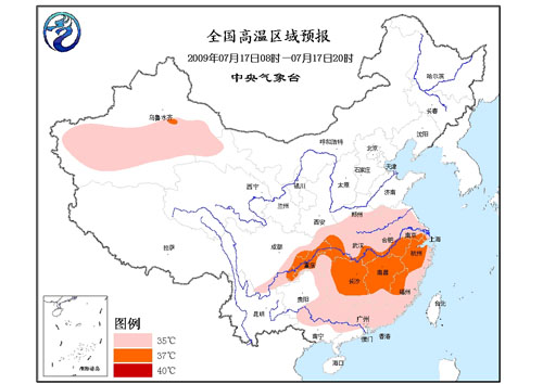 中央氣象臺今晨六時繼續發布高溫橙色警報:預計,今天白天,黃淮南部、江淮、江漢、江南、華南中北部以及貴州東部、重慶、新疆南疆盆地等地將有35℃以上的高溫,其中,江南大部、重慶大部的最高氣溫可達37~39℃,重慶和浙江中部的局地可達40℃。