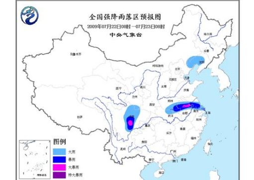 中新網(wǎng)7月22日電 中央氣象臺22日06時發(fā)布暴雨預(yù)報:預(yù)計,今天白天到夜間, 遼寧西北部、河南南部、安徽中北部、江蘇中南部、湖北北部、甘肅東南部、四川中部等地的部分地區(qū)有大到暴雨, 其中,四川盆地西南部、安徽中部、江蘇中部的局部地區(qū)有大暴雨。上述部分地區(qū)并伴有短時雷雨大風(fēng)等強對流天氣。
