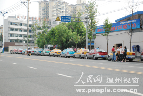 溫州市區(qū)惠民路、龍霞路、火車站等地出現(xiàn)攔阻出租車運(yùn)營,少數(shù)營運(yùn)出租車玻璃被砸現(xiàn)象,因擔(dān)心出車被砸而將車停路邊,部分出租車沒有上路營運(yùn),而是在市區(qū)過境公路一帶,其車輛在路邊一字排開。