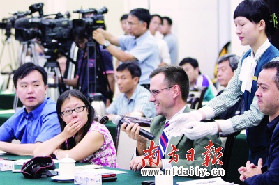 昨日下午3時,廣州珠島賓館紅棉廳,來自美、英、法、德、日、韓、新加坡、香港等8個國家和地區20家境外主流媒體41名記者把長槍短炮架了起來。他們此次到廣東采訪,有一個共同的“條件”:“要見廣東省委書記汪洋”。