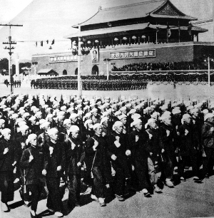 國慶50周年閱兵 陸軍航空兵、海軍陸戰隊、武警特警隊和預備役部隊首次編隊受閱。1999年國慶閱兵,人民解放軍陸、海、空、二炮、武警部隊和民兵、預備役部隊24000多人組成的42個地面方隊和10個空中梯隊共52個編隊接受了檢閱。