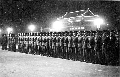受檢的時刻終于來臨。1958年9月30日下午,我們“湘軍方隊”停止了訓(xùn)練,轉(zhuǎn)入受閱時的著裝和衛(wèi)生準(zhǔn)備,熨衣服、擦皮鞋、縫襯肩、釘領(lǐng)花、安肩章、洗澡、理發(fā)、刮胡須忙個不停。下午5時,大家都穿上受閱著裝列隊檢查,全隊人員配帶的肩花都是中尉或上尉,這些平時曬得黑油油顯得有些老成粗放的“老兵”,一下子變得年青、標(biāo)致、威武了;在激動心情的催促和新式著裝的反光照耀下,每個人的臉面變得白中帶紅、可親可愛了。