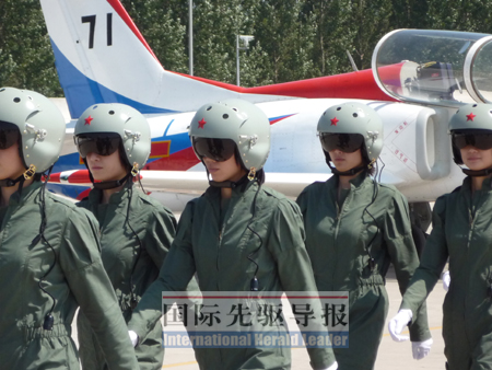 《國際先驅(qū)導(dǎo)報(bào)》記者于冬 特約撰稿劉轉(zhuǎn)林、荊繼洪發(fā)自北京 數(shù)十架戰(zhàn)鷹昂首列陣,16名殲擊機(jī)女飛行員意氣風(fēng)發(fā)。