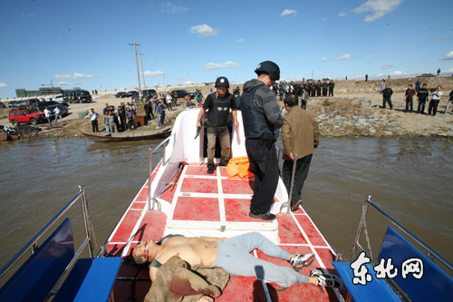 9月8日早6時許,肇源縣肇源鎮“頭道汀”江灣里的漁民唐景芳報案稱,警察布控抓捕的通緝犯在他的捕魚窩棚找飯吃。緝捕指揮部立即調集警力趕赴發現王犯蹤跡的現場,10時許,緝捕組在肇源鎮松花江的一處江心島附近發現犯罪嫌疑人王厚軍。此時,吉林省松原警方也已在江對岸部署了大量警力。經多次喊話、鳴槍警告無效,王逃入江中,大慶市公安局的刑警、特警涉水追捕,當時水已經齊胸深,王犯無處可逃,仍然拒捕,并舉槍向緝捕民警打了一槍,被大慶市公安局特警當場擊斃。隨后,在江中找到哈爾濱鐵路公安局民警被搶的“77式”手槍,發現槍膛中已經擊發的子彈卡殼。