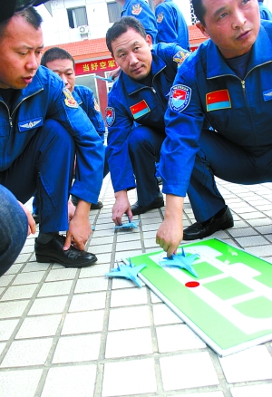 昨天下午5點,將參與此次閱兵的20多名殲擊機(jī)飛行員齊聚在一起,在師長劉國勝的帶領(lǐng)下開始了一場地面模擬演練。
