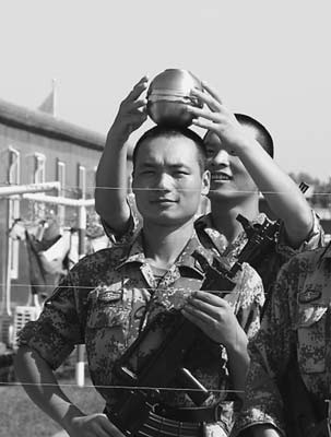 為此,每天的軍姿訓(xùn)練他就貼著墻根,一站就是兩個小時以上;從訓(xùn)練場下來,無論是休息還是就餐,他為了保持上體正直,背上一直綁著木架子;晚上睡覺他也平躺著,從來不用枕頭。一個月過后,他的軍姿挺拔,無可挑剔,連教練員都服了他。