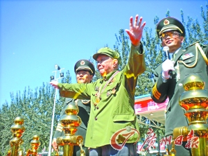 羅浪告訴本報記者:“開國大典時,軍樂團只有200來號人。那時連樂器都是繳獲的,有美國的、德國的、日本的。”羅老掐著指頭,指著訓練場:“你看,現(xiàn)在我們的國產(chǎn)樂器都那么漂亮了。這次閱兵也是建國以來軍樂團規(guī)模最大的一次。”