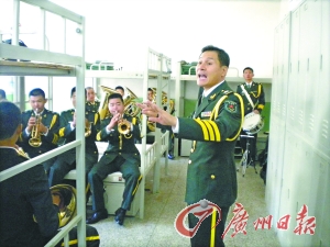 12日上午8時許,聯(lián)合軍樂團四大隊副政委段亨明就把來自武警廣東省總隊軍樂團的31位軍樂團樂手集中到一起,抓緊時間再練習廣東音樂《迎賓曲》的演奏。