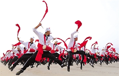 劉國超:安塞腰鼓特別值得期待。1000多名來自陜西的農(nóng)民,白衣紅鼓,在經(jīng)過天安門廣場時跳躍著打響歡鼓。這么大的規(guī)模,這么長的距離,邊行進(jìn)邊打腰鼓是一個很大的創(chuàng)新。這個節(jié)目的意義也很深遠(yuǎn),一方面我們不應(yīng)該忘記歷史上農(nóng)民為中國革命作出的貢獻(xiàn),另一方面也體現(xiàn)了當(dāng)代社會主義新農(nóng)村中農(nóng)民嶄新的精神風(fēng)貌。