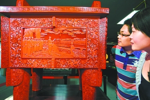 由雕漆工藝完成的鼎盛中華造型以司母戊鼎為原型,重達300多斤。制作時先經過半年時間刷上240多層漆,再在1.2厘米厚度的漆面上進行手工雕刻。其正面以油畫“開國大典”為內容,背面題為“中華賦”及長城圖案。象牙作品以長兩米、重320斤的百年“老”象牙材料為基,以56個民族載歌載舞為主題,背景是30處世界文化遺產。象牙、雕漆、玉器和景泰藍被譽為工藝美術界的“四大名旦”,另外兩項巨作景泰藍“太平有象”和玉雕“九龍浴佛”也將陸續亮相。 (記者耿諾)