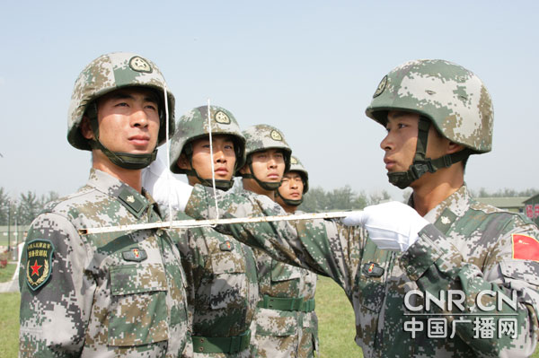 “向右擺頭45度,帽檐前緣與眉同高。”“兩腳分開60度,向前踢腿時,腳掌距離地面60厘米。”“向右看到底看什么地方……”這組看起來枯燥乏味的數(shù)字 、簡單易學的動作,卻并不容易精確掌握做到,并直接影響著閱兵訓練的全局(方隊的整齊一致)。