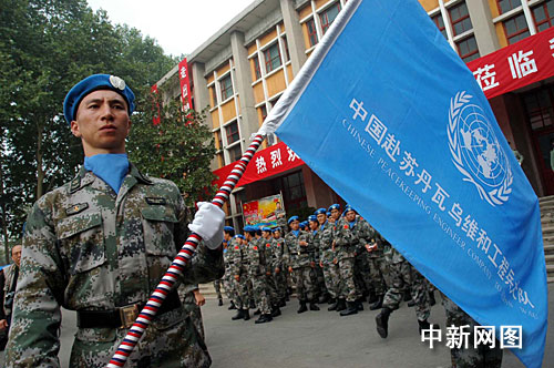 中新網(wǎng)洛陽9月25日電(喬獻(xiàn) 董紅哲 依日歌)9月25日上午,中國第六批赴蘇丹瓦烏地區(qū)維和的工程兵大隊(duì)、運(yùn)輸大隊(duì)在素有“鐵軍”之稱的駐洛陽某紅軍師成立。