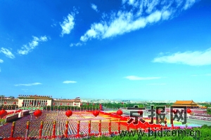 不經歷風雨怎能見彩虹!似乎是對偉大祖國60年來走過的不平凡道路的真實寫照,慶典前的天安門廣場在經歷電閃雷鳴后終于撥云見日,迎來湛藍的天空和燦爛的陽光。今天上午10時,廣場上空天高云淡,日朗風清,慶典典禮在良好的天氣條件下隆重舉行。