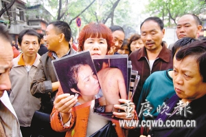 交警暫時將公路封道,圍觀人群將法院大門圍得水泄不通。9時40分,兩輛交警警車前后開道,3輛法警車夾在當中,5輛警車單獨押解著謝才萍回看守所。5分鐘后,其他被告人才被警車押解回看守所。