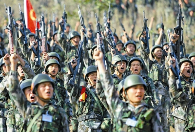 上午10時15分,空降兵某部官兵全副武裝空降中原某地后,迅速向預定目標進發。當部隊行進到中原某地時,隨著一聲槍響,所有戰斗員立即進行隱蔽,并尋找戰機。不一會,一小股伏擊“敵人”突然出現,數十名戰斗員一齊向“敵人”開火,一時間整個山谷槍炮聲連成一片,不到10分鐘就全殲該小股之“敵”。