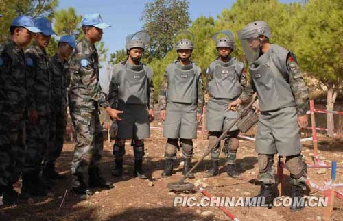 我第六批赴黎巴嫩維和工兵營以成都軍區某集團軍工兵團為主組成。該團曾參加過中越邊境大掃雷,3次受派進行人道主義援外排雷,已成功擔負3批赴黎維和掃雷任務,掃雷排爆經驗豐富,先后發現和排除未爆彈及地雷五千余枚,并創造了“零傷亡”的出色成績。