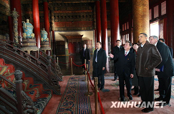 “感謝你們給我這次精彩的故宮之旅。故宮的確是雄偉壯麗,是中華文明燦爛輝煌、長盛不衰的見證。貝拉克·奧巴馬 2009年11月17日!