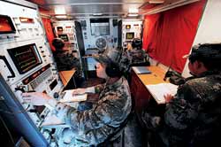 由濟南軍區組織的“鐵拳—2009·確山”實兵實彈檢驗性演習11月中旬拉開帷幕,演習全程設置了復雜電磁環境,這是我軍首次在復雜電磁環境下對整建制機械化步兵師綜合作戰能力進行檢驗,探索我軍信息化條件下的訓法、戰法。在遠程機動過程中,記者深深感受到如影隨形、變幻莫測的電磁干擾。
