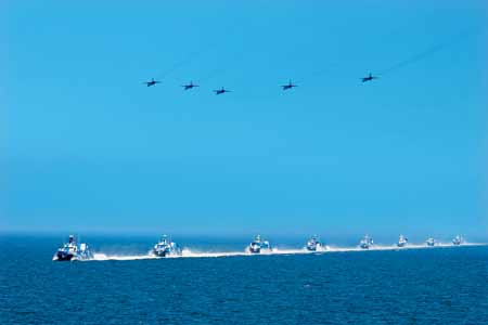 隨著編隊指揮員一聲令下,8艘導彈快艇駛向大海深處。