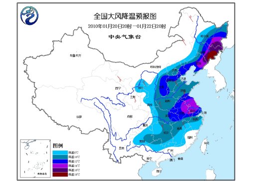 20日20時(shí)至22日20時(shí),華北、東北、寧夏、陜西、黃淮、江淮、江漢、江南等地將先后有4~6級(jí)、陣風(fēng)7級(jí)偏北風(fēng)。上述地區(qū)及華南北部、貴州等地的氣溫將下降8~12℃,其中,東北地區(qū)東部、江淮東部等地降溫幅度可達(dá)14~16℃,東北地區(qū)東南部的部分地區(qū)降溫達(dá)18~20℃。
