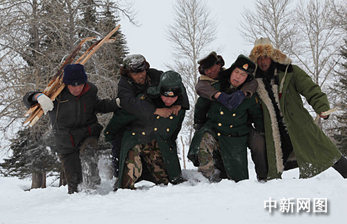 中新網1月27日電 (丁寧) 1月26日,新疆富蘊縣邊防大隊庫衛邊防派出所警官背著兩名被困哈薩克族牧民在嚴寒雪中艱難前行。