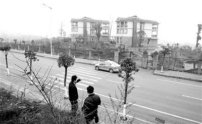 正在喂狗的時候,有兩輛車開了過來,車上10多個人一下來就迫不及待地倚著欄桿看里面的別墅。“別墅真是豪華啊,在我們整個重慶找不到這好的了!”這些游客一個個看得很興奮,還有的在別墅邊照相留念。