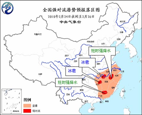 預計未來10天,南方地區(qū)降雨天氣較多,2月24日至26日,長江中下游的部分地區(qū)將有大雨、局部地區(qū)有暴雨天氣,并伴有短時雷雨大風等強對流天氣。