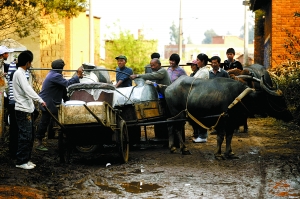 家住河?xùn)|村的朱家付每天趕著牛車,走個(gè)把小時(shí)來(lái)取水。自從打井隊(duì)在雙合村口打出水井后,朱家付結(jié)束了每天花兩小時(shí)去小壩子村取水的煩惱。他說(shuō),“那時(shí)候4個(gè)人來(lái)回6個(gè)小時(shí),用桶挑水。”