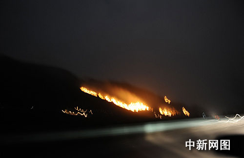 26日晚,中新網記者夜行貴州六盤水到安順市關嶺布依族苗族自治縣的路上,在不到三小時的時間里,連續看到5起正在燃燒的山火。其中,在青黃高速穿越的六枝特區安樂塘附近層層疊疊的大山中間,一條火龍在幾座山的半腰際蔓延肆虐,遠遠望去,猛烈的火勢映紅天際。而其他幾處山火亦是從山腰向上蔓延,有愈發猛烈之勢。看到山火后,記者隨即撥打火警119,并從接線員處了解到,或因氣溫升高的原因,當晚接到的森林火警數量較之前幾日陡增,消防部門正會同林業及相關單位協調調集人力滅火,但形勢仍不容樂觀。