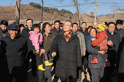 在世人驚艷中國速度、向往北京魅力的今天,地處光環(huán)邊緣的“盲區(qū)”、甚至被人遺忘的偏橋村,卻在共和國總理心中占據(jù)著特殊的位置:今年的全國兩會上,溫家寶在參加河北代表團(tuán)討論時(shí),在閉幕時(shí)的中外記者會上,兩次提及這個(gè)地方;2000年,2005年,2010年,溫家寶十年三訪偏橋村,并約定在退休后一定再來……