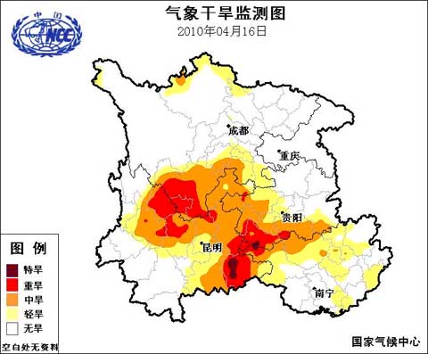 中新網(wǎng)4月16日電 中央氣象臺16日18時(shí)繼續(xù)發(fā)布干旱黃色預(yù)警:據(jù)監(jiān)測,云南中北部和東部、貴州西部和南部、廣西西北部、四川南部仍存在中度以上氣象干旱。未來三天,貴州西南部、廣西西北部、云南東部、四川南部有一般不足5毫米的降雨,廣西東部的局部地區(qū)有中到大雨。西南主要旱區(qū)大部地區(qū)氣象干旱仍將持續(xù)。