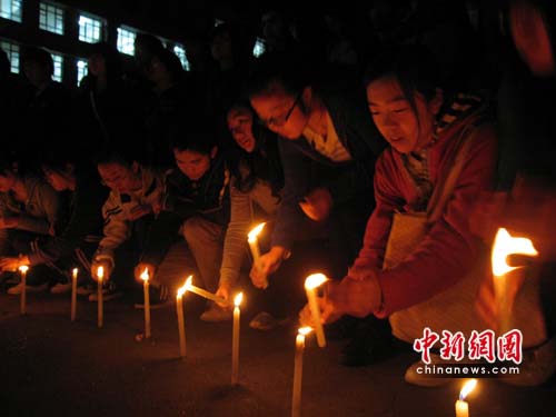 中新網烏魯木齊4月22日電(冀江彤)21號晚間10時,新疆大學近3000名學子,點燃燭光,俯首致哀,表達對玉樹地震遇難者的哀思。活動結束后,仍有許多學生手捧燭光,不愿離去,為玉樹人民祈福加油。