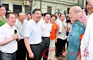 汪洋邊走邊看,認(rèn)真聽取介紹,要求廣州市總結(jié)獵德村改造的好經(jīng)驗好做法,加快推進(jìn)城中村和舊城區(qū)改造。