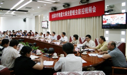 會議由農(nóng)業(yè)部總經(jīng)濟(jì)師、全國農(nóng)作物重大病蟲暨治蝗指揮部副指揮長陳萌山主持。在31個(gè)省、自治區(qū)、直轄市設(shè)立了分會場,各省(區(qū)、市)農(nóng)業(yè)(農(nóng)牧、畜牧)廳(委、局),新疆生產(chǎn)建設(shè)兵團(tuán)農(nóng)業(yè)局、黑龍江農(nóng)墾總局負(fù)責(zé)人,有關(guān)省(區(qū)、市)農(nóng)作物重大病蟲暨蝗災(zāi)防治指揮部成員,重點(diǎn)市、縣蝗蟲防治領(lǐng)導(dǎo)機(jī)構(gòu)成員等,共1600余人參加會議。