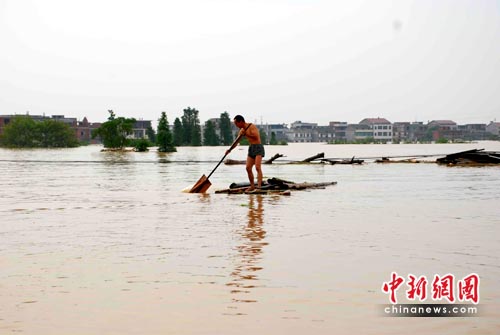 中新網臨川6月23日電(張見悅 何柳斌)記者23日從江西省防總獲悉,當天早晨6時30分左右,撫河唱凱堤內的洪水在羅針鎮長湖村附近沖開一個缺口。