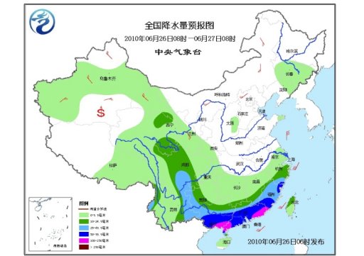 中央氣象臺今晨繼續發布暴雨藍色預警:預計,6月26日08時到6月27日08時,浙江南部、江西南部、福建大部、廣東大部、廣西中南部有大雨或暴雨,局地有大暴雨,上述部分地區并伴有短時雷雨大風等強對流天氣。請當地繼續注意城市和農田的排澇;山區的朋友應加強地質災害的防御。