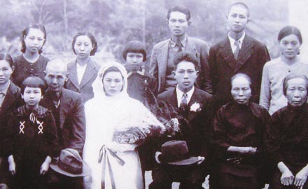 王永慶有八個兄弟姊妹,但因早年家境清寒多被送養,所以他努力工作籌錢,就是為迎回妹妹。這是一九四二年王永在婚禮時,拍下了兄弟姊妹們難得的合照。聯合報系資料照片