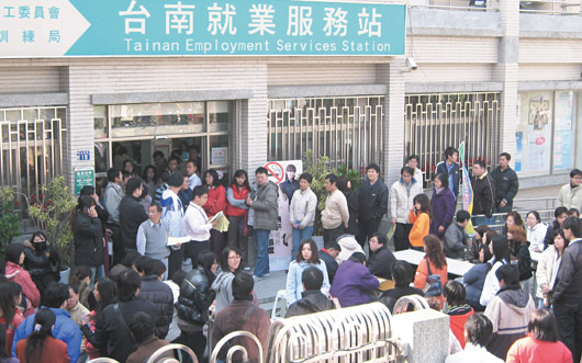 事實上過年前請領失業給付的人潮就涌現,約是平常的兩、三倍。去年十二月請領失業給付人數達三萬人,平均每日約一千人,年前兩周每天約增至兩、三千人。這段期間請領失業給付民眾多數是做失業確認,也就是至少已失業兩個月以上。
