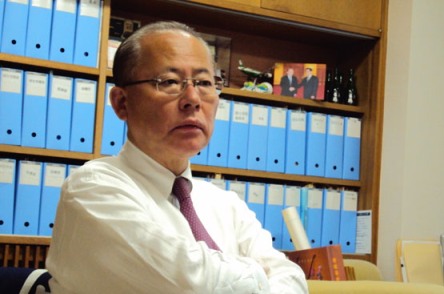 4月29日下午,記者走進日本參議院議員、民主黨國會對策委員會常務(wù)副委員長、民主黨外委會主任川上義博的辦公室,首先看見書架上擺放著中共總書記胡錦濤與他在人民大會堂握手的照片。