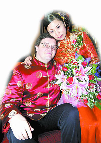 于是當(dāng)Dan向她求婚時,Eve就應(yīng)允了。那邊的Dan在網(wǎng)絡(luò)上立即發(fā)送“I love you so”并跟著一連串笑臉。更令人吃驚的是,Dan當(dāng)時只有5000元存款,卻用4800元定做了結(jié)婚戒指,并向母親借錢買了機票,毫不猶豫地飛到中國,當(dāng)時他只知道Eve住在杭州,連具體的地址都搞不清楚,為此Eve后來還開玩笑地對Dan說,如果當(dāng)時我反悔了,不去機場接你,你在中國可就無家可歸了。