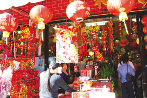虎年的腳步聲近了,中國城的大小商家鉚足了勁,準備來個“開門紅”,以虎為圖案的宣傳招牌到處可以看見。走在中國城的街道上,最能夠吸引大家眼球的是迎新春的“中國紅”的各種飾物。“虎年招財”掛件,紅燈籠,紅春聯,紅色的吉祥物、招財進寶的童子,健康長壽的壽星,顏色全部以紅色為基調,讓整條百老匯大街喜氣洋洋。店員珍妮告訴記者,前來詢問“虎年商品”的華人、“洋人”都很多,他們都很懂中國新年,知道挑選與生肖有關的小商品。她說,不少學校的老師,也前來購買一些“虎年紅包袋”及可愛小老虎的飾件;這些東西老師都將用于課堂,讓學生了解中國人過年的民俗,他們還會給學生發“新年紅包”。