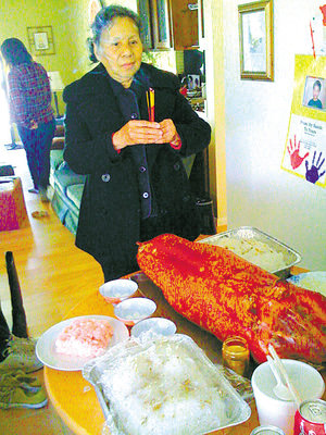 美國羅蘭岡學區(qū)越華裔教師、也是白人媳婦張凱莉(Caryn Truong Kelly),上周未即返回蒙特利公園老家拜拜。她說,由于兄弟姊妹散居加州各地,各有各的工作,很難在農歷除夕當天團圓祭拜祖先,因此來自越南的父母提前號召他們返家團圓祭拜。