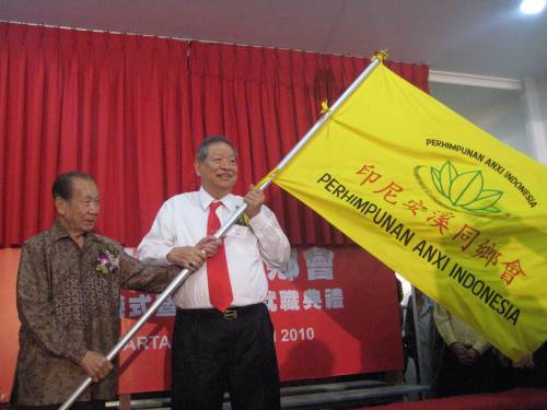 總主席白德明從資深榮譽(yù)主席唐裕手中接過會旗后表示,印尼安溪鄉(xiāng)親這些多年來夢寐以求的同鄉(xiāng)會,終于正式成立,舉行首屆的理監(jiān)事就職典禮。