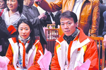 500多名僑界代表當(dāng)日共同守候功臣們的到來,奪金的花樣滑冰雙人滑選手申雪和趙宏博剛到場,便受到英雄和明星式的待遇,從進(jìn)場到坐下便好像“手握不完、相影不完、名簽不完。”隨后,王冰玉、周妍、岳清爽和柳蔭這冰壺4姐妹入場,又引發(fā)新一輪高潮,場面極為熱鬧,閃光燈亮個(gè)不停。