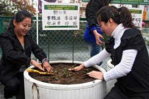 中新網11月18日電 據日本新華僑報網報道,17日,正在日本山梨縣笛吹市石多家溫泉工作的中國研修生們在觀光車站附近栽種下一簇簇美麗的薔薇花。