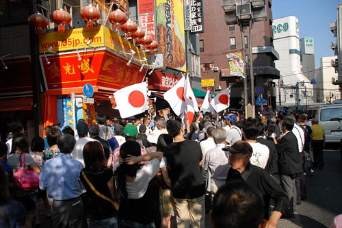 顧梓芹還介紹說,去年9月26日,曾經有30多名日本人拿著日本國旗到我們店前來騷擾,高喊“堅決反對民主黨的外國人政策!”“支那人滾回去!”等等口號,在這里鬧了整整兩個多小時,搞得我們沒有辦法營業。他們還在這里動手動腳,拍我們女工作人員的肩膀,拉扯她們的衣服,還好,這些都得了警方的及時制止。事后,我們到池袋警察署遞交了被害登錄,但警方拒絕接受,說“你們這是政治問題”。這實在讓人搞不明白。這幾天,東京都警視廳機動隊、組織犯罪對策科以及池袋警察署不斷來人,一方面對我們進行保護性指導,要求我們在那一天把現金等物收管好,讓員工也冷靜對待,另一方面表示他們當天也會到現場,對我們進行保護。