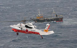 這一海域屬于長崎海上保安部第7管區。第7管區海上保安本部接到報警后立即出動5艘海上巡邏艇和兩架飛機進行搜索救援。同時,接到災害派遣救援請求的海上自衛隊大村航空基地也派出飛機,連同“山田水產”公司派出的9艘漁船一同加入了救援搜索的行列。