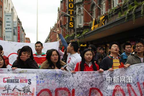 中新網4月14日電 據愛爾蘭《華人報》報道,當地時間4月12日,約兩千名愛爾蘭華僑華人在首都都柏林舉行了“反對藏獨 支持奧運”游行。